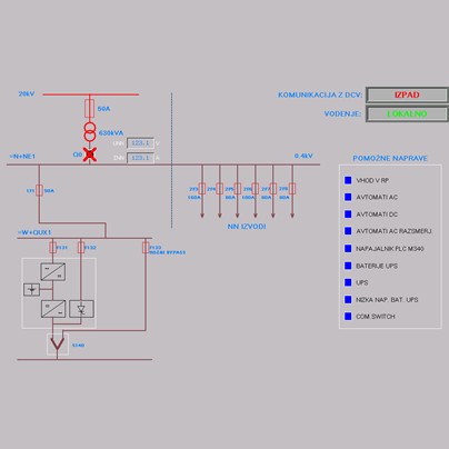 Primer 2: Indikatorji okvar integrirani v napravi za daljinsko vodenje. Naprava omogoča lokalno in daljinsko vodenje SN postaj z do 16 SN celic